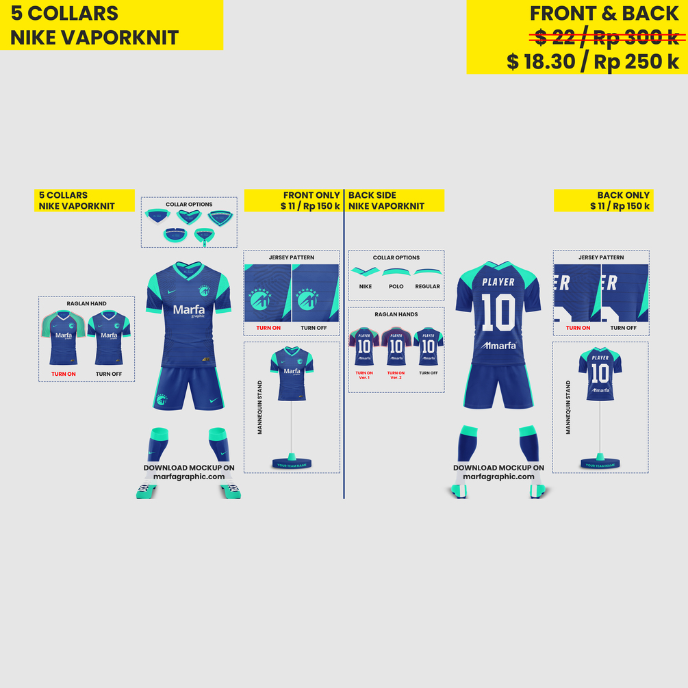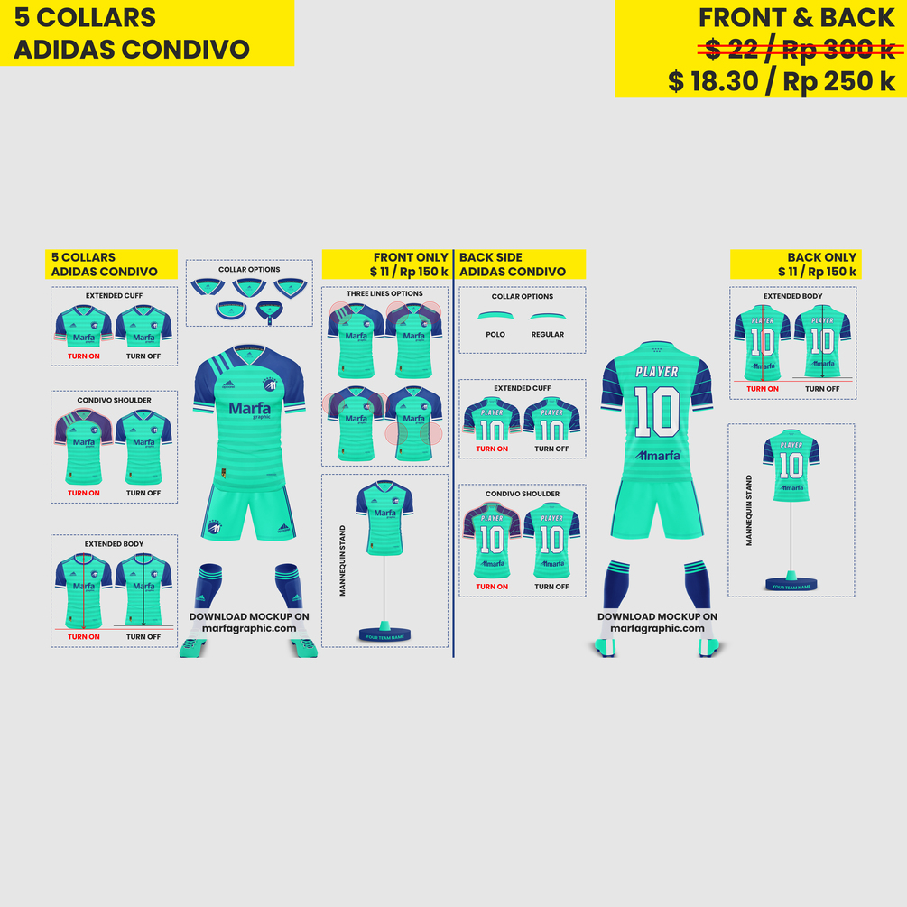 On Just one single mockup you can design jersey based on Nike 2020, Adidas Condivo or Nike classic jersey and of course you can design with another apparel