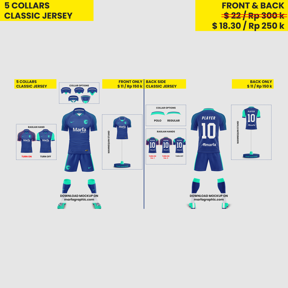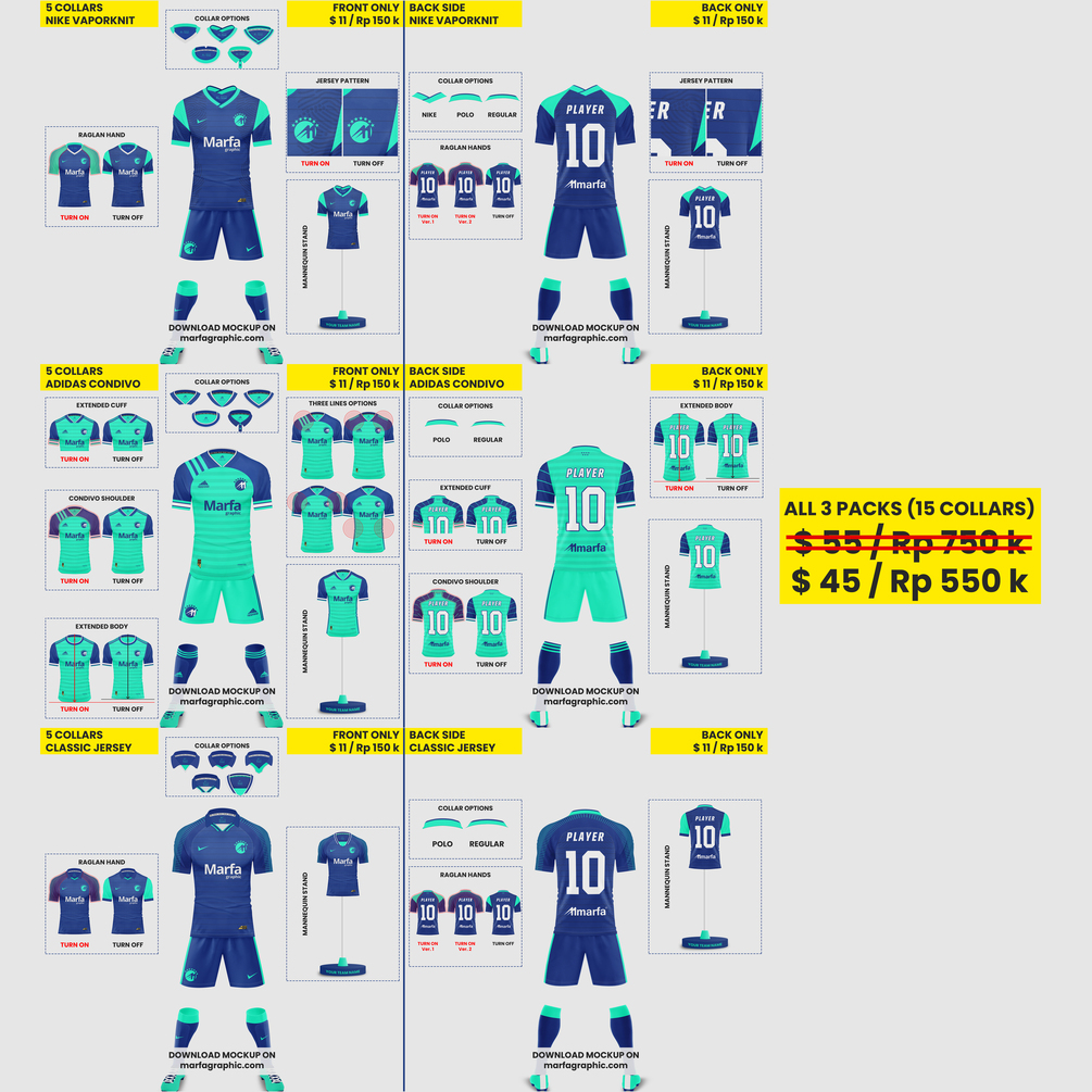 You'll get total 15 collars. Adidas Condivo 2020 Mockup (5 Collars), Nike 2020 Mockup (5 Collars) and Nike Classic Mockup (5 Collars).