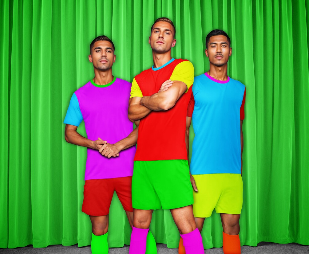 Showcase your football kit designs with this realistic Soccer Jersey Mockup with Curtain Backdrop. Featuring 3 movable football player models in fullset jerseys with a dramatic curtain backdrop, this mockup adds elegance and focus to your jersey presentation. Perfect for professional portfolios, team branding, or product previews.