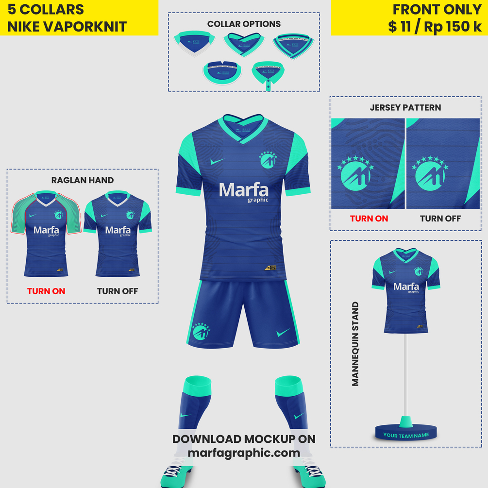 On Just one single mockup you can design jersey based on Nike 2020 jersey and of course you can design with another apparel