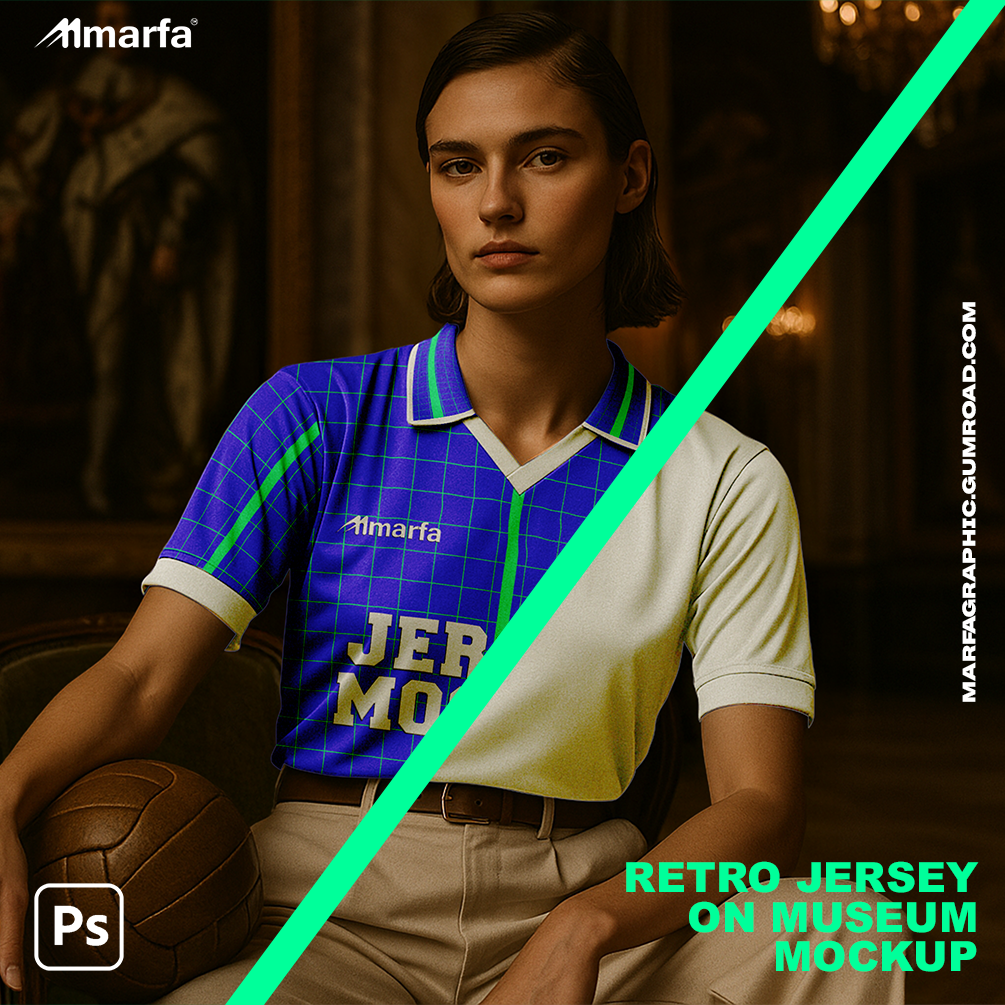 Retro Football Jersey on Museum Mockup (Female Model)