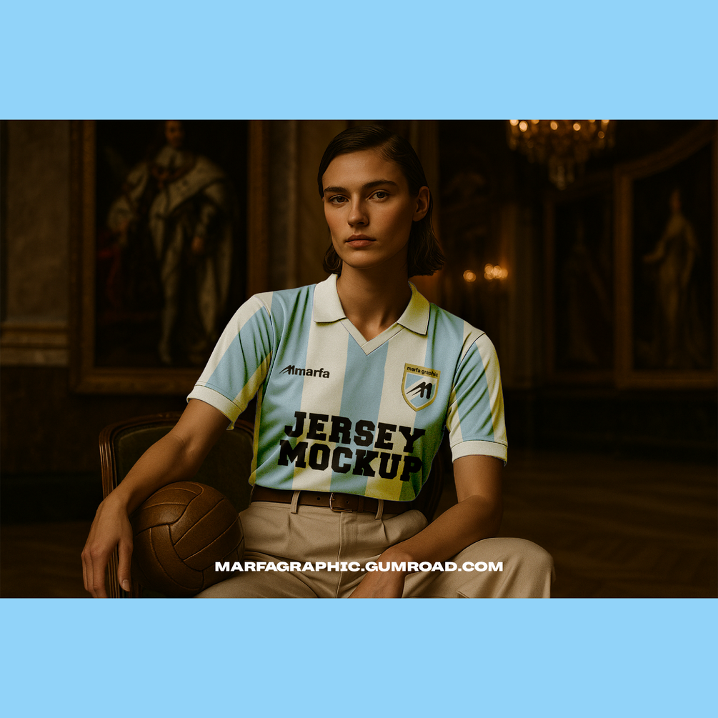 Retro Football Jersey on Museum Mockup (Female Model)